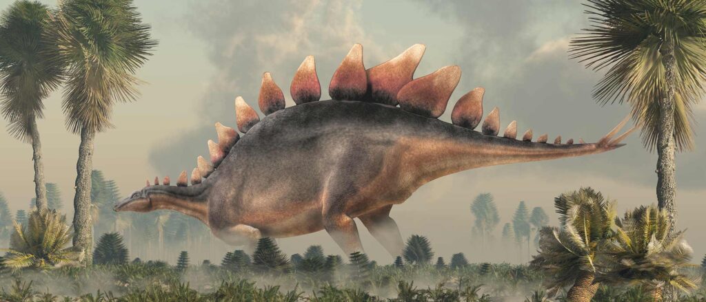 Visste du? Bakbenen var mycket längre än frambenen vilket tillsammans med den krumma ryggen gav Stegosaurus ett puckelryggigt utseende. På grund av benens byggnad och skillnad i längd, mellan fram och bakben, kunde Stegosaurus inte röra sig speciellt snabbt, och kom troligen inte upp i högre ”hastighet” än 6-7 km/tim.