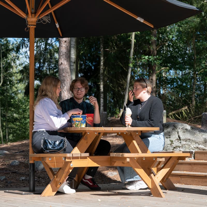 Ta en paus och slå dig ner på nya djungelterrassen och unna dig något smarrigt från apornas egna kiosk, Djungelkiosken. Här finns både lättare lunchalternativ och sötsaker.