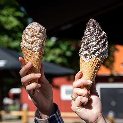 Mitt i nordiska skogen bland björnar och vargar ligger Björnkiosken. Njut av en kopp kaffe eller en glass och slå dig ner på någon av många sittmöjligheter i området.